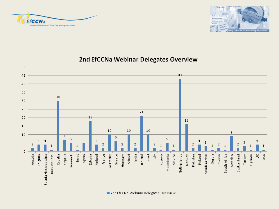 Almost 250 delegates from four Continents had registered for this event. Great speakers and audience - obviously there is still big interest in this topic as the pandemic has had such a huge impact not only on the professional life of critical care nurses. EfCCNa thanks all participants for their interest.